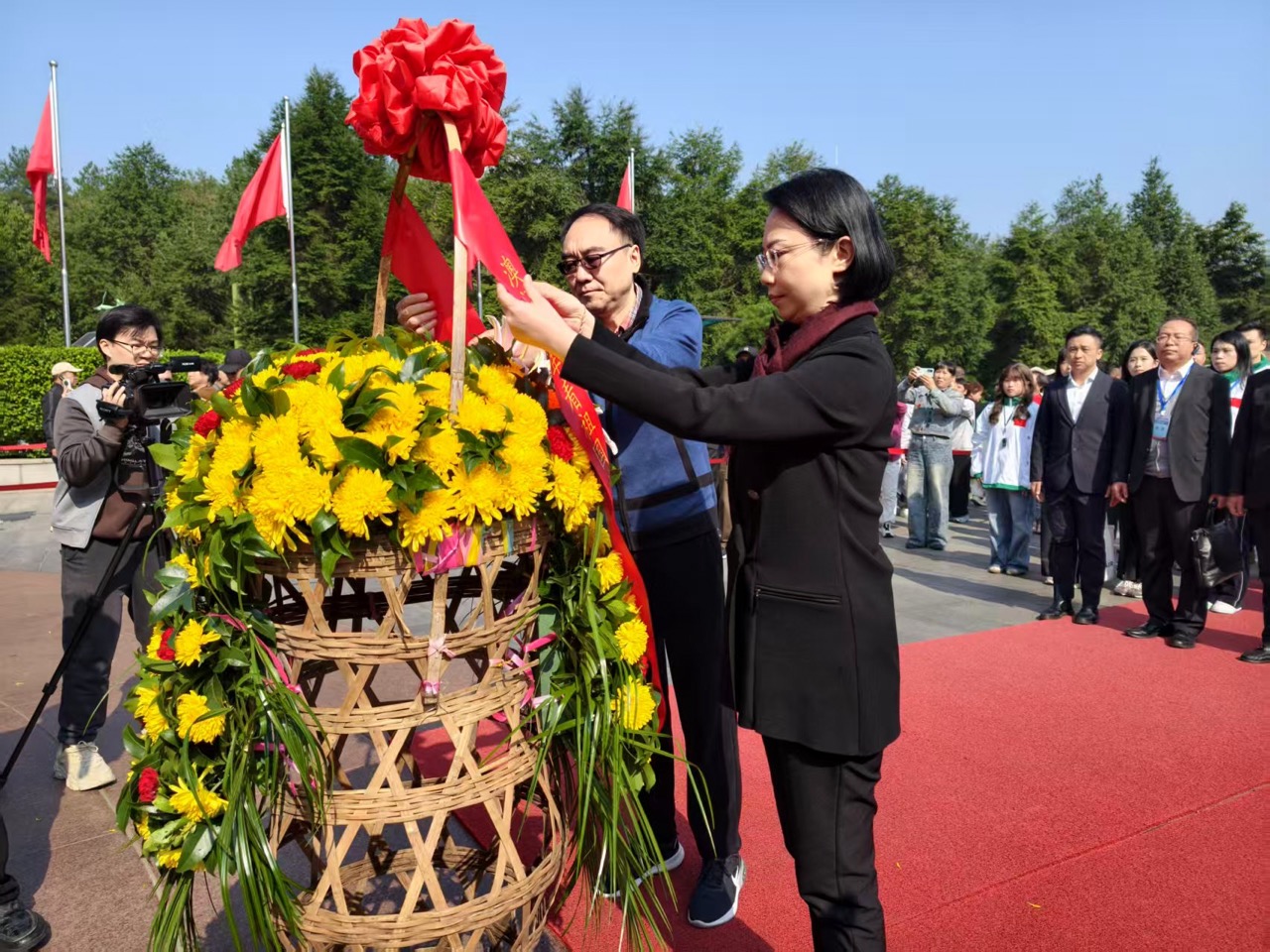 红刊杂志社编辑部电(孙业腾)23日上午,在澳门特区政府社会文化司司长柯岚、全国青联副主席黄洁贞的带领下,约50名澳门青年参与“澳门青年看祖国”活动的青年于湖南省韶山市毛泽东广场举行会师仪式,并向毛泽东同志铜像敬献花篮,表达对伟人的敬意。